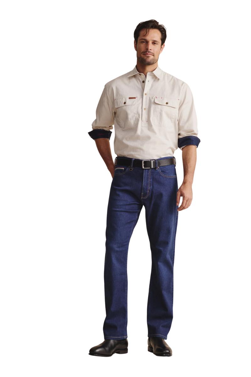 The Brockman lightweight half placket work shirt is for those who don’t shy away from anything, especially getting the job done. Stand out in this 100% lightweight cotton, UPF50+ work shirt. Reinforced double-stitched seams, extra-large front pockets and heavy-duty metal buttons stitched in S.Kidman red ensure lasting strength. Finished with 100% cotton stripe tape reinforcements. It’s made to work as hard as you do.