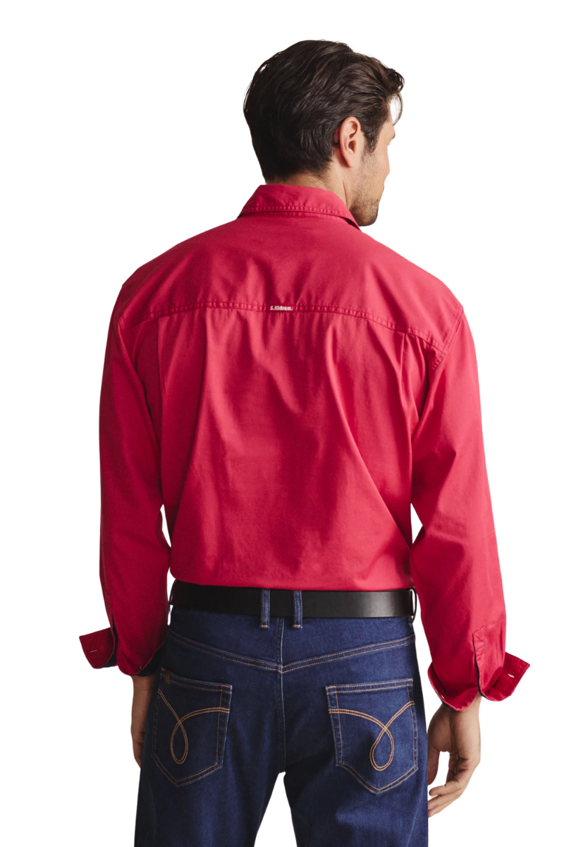 S.Kidman Mens Brockman Half Button L/S Work Shirt (1SHM00131) Red XS