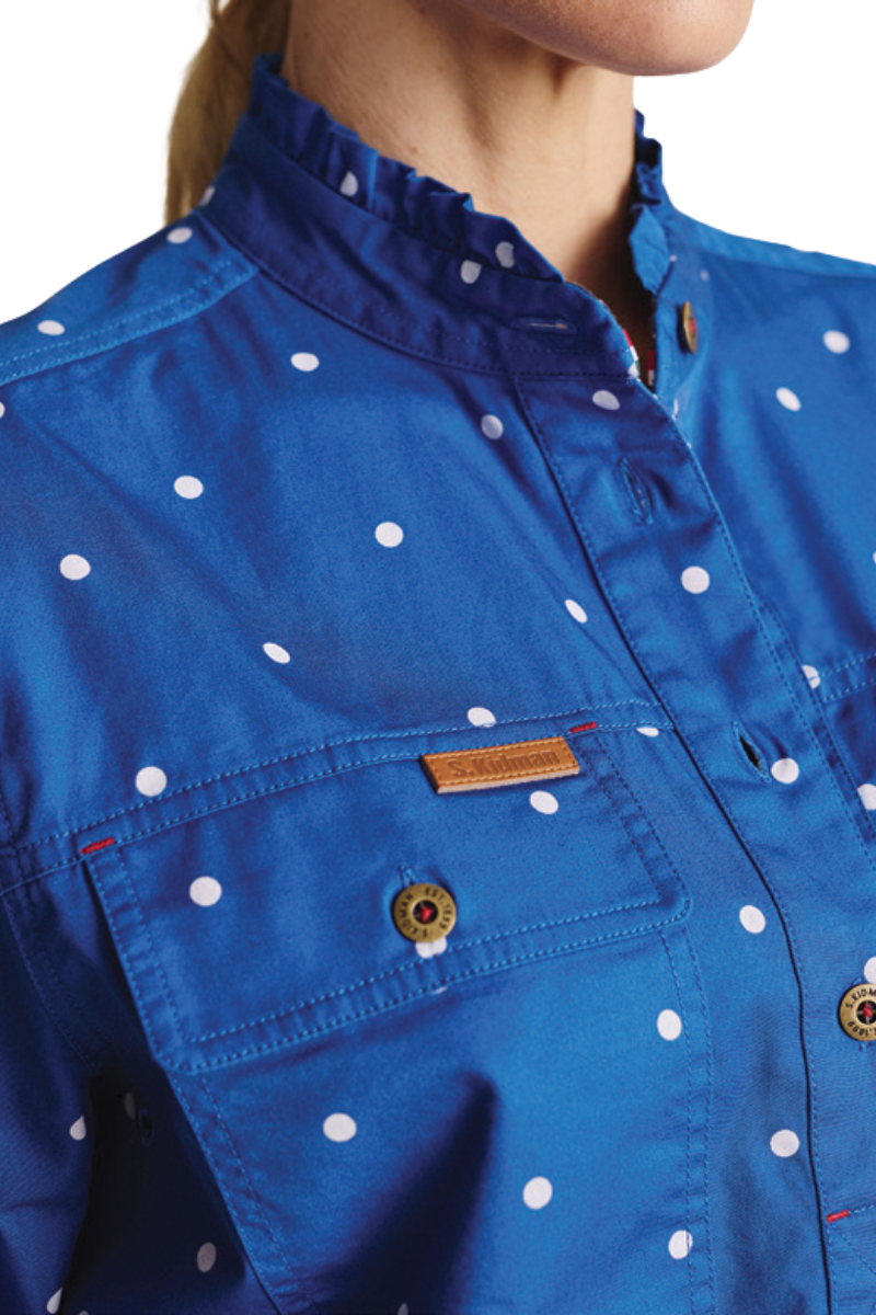 The Acacia half placket work shirt brings a touch of uniqueness with its frilled collar detailing. Crafted from 100% lightweight cotton, it has plenty going for it. Reinforced double-stitched seams, large pockets, underarm ventilation eyelets, heavy-duty buttons and our signature S.Kidman finish come together to make a statement in toughness with a touch of flair.