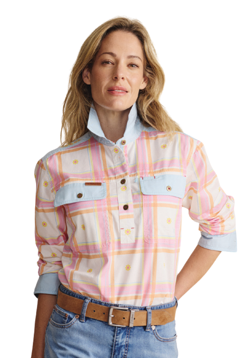The Camfield lightweight half placket shirt makes light work of hot days. Make a bold sun-smart statement in this 100% cotton, UPF 50+ workwear staple. With underarm ventilation eyelets and generous pockets, it's built for practicality. Reinforced with double-stitched seams, bar tacks, and heavy-duty metal buttons in signature S.Kidman red thread, you know it’s made to last.