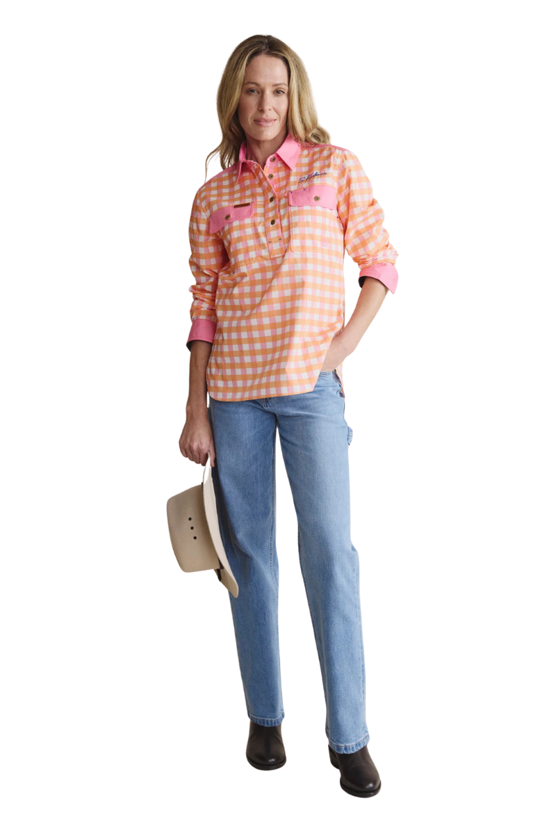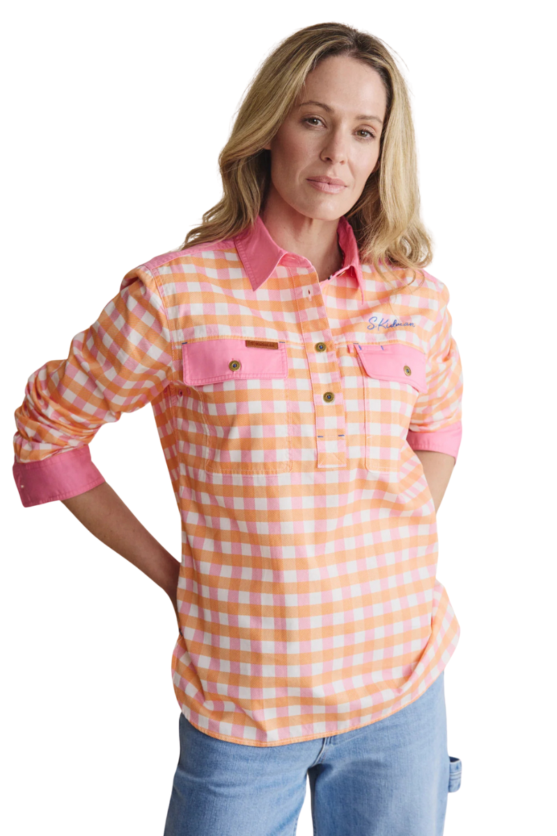 The Camfield lightweight half placket shirt makes light work of hot days. Make a bold workwear statement in this 100% cotton staple. With underarm ventilation eyelets and generous pockets, it's built for practicality. Reinforced with double-stitched seams, bar tacks, and heavy-duty metal buttons in signature S.Kidman red thread, you know it’s made to last.