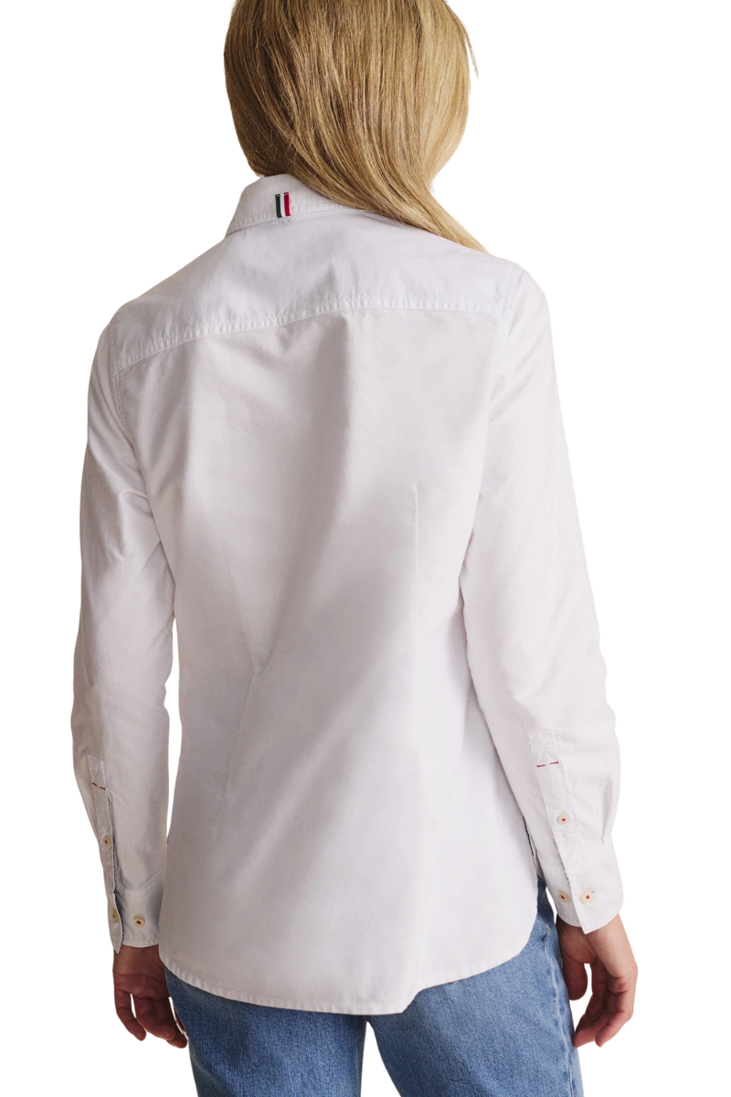 Crafted from 100% Oxford cotton and featuring a classic tailored fit, the Lennard shirt is a wardrobe essential. The collar stand, cuffs, and front placket are lined with our exclusive micro polka dot poplin, while signature S.Kidman red detailing adds a touch of distinction. Tuck it in for a polished office look or untucked for that effortlessly smart, yet casual feel.