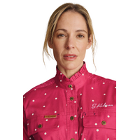For ladies of the land who work on the land their way. The Lilly Pilly full placket work shirt brings a touch of uniqueness with its frilled collar detailing. Crafted from 100% lightweight cotton, it has plenty going for it. Reinforced double-stitched seams, large pockets, underarm ventilation eyelets, heavy-duty buttons and our signature S.Kidman finish come together to make a statement in toughness with a touch of flair.