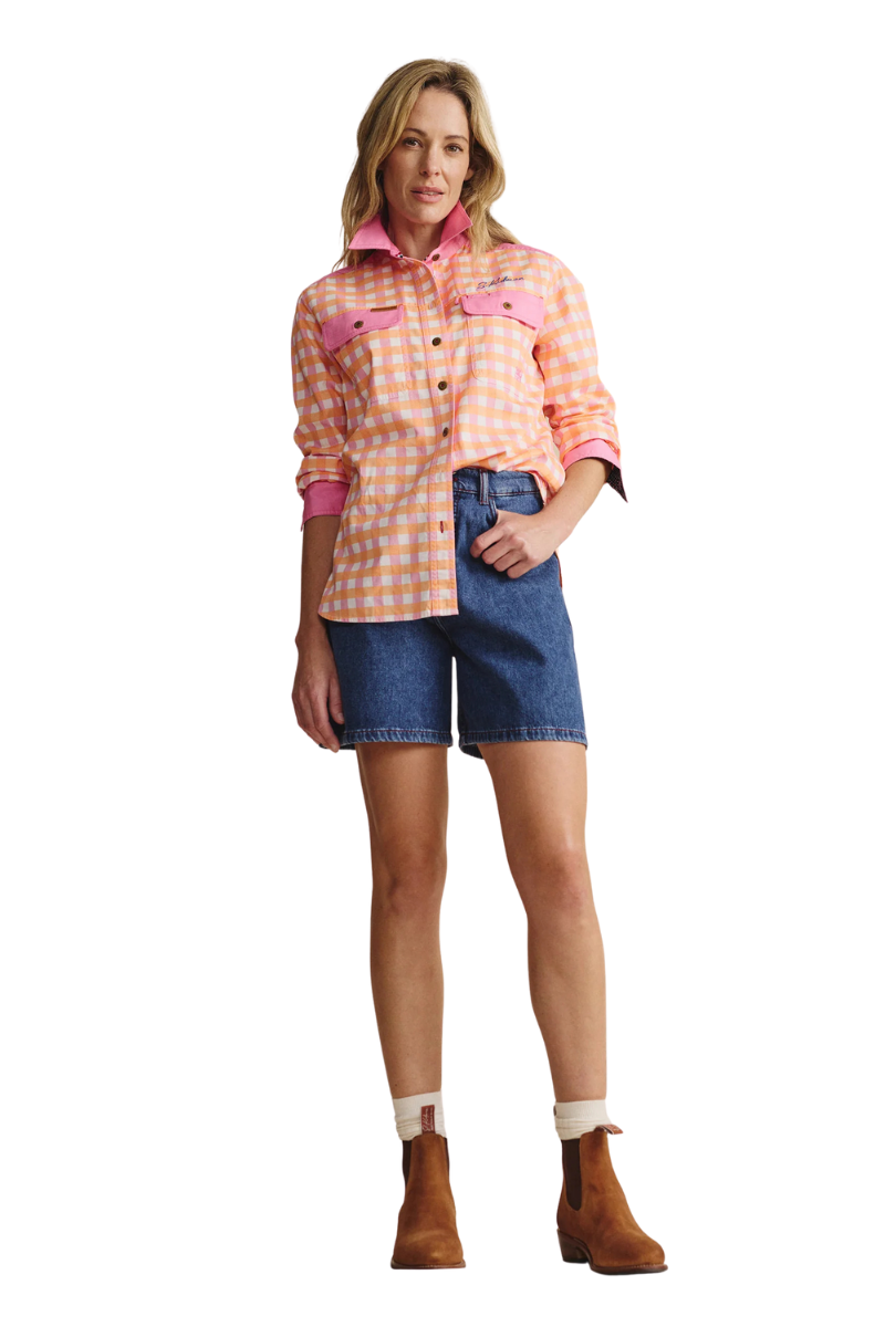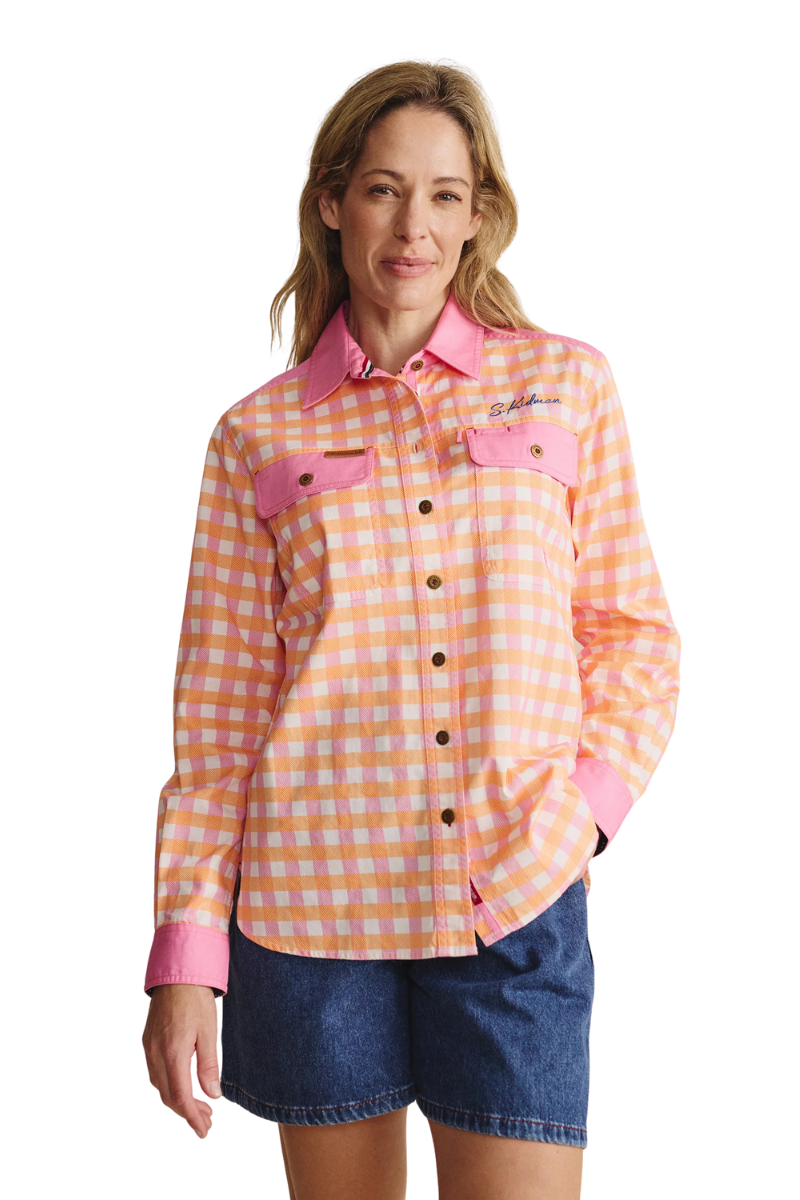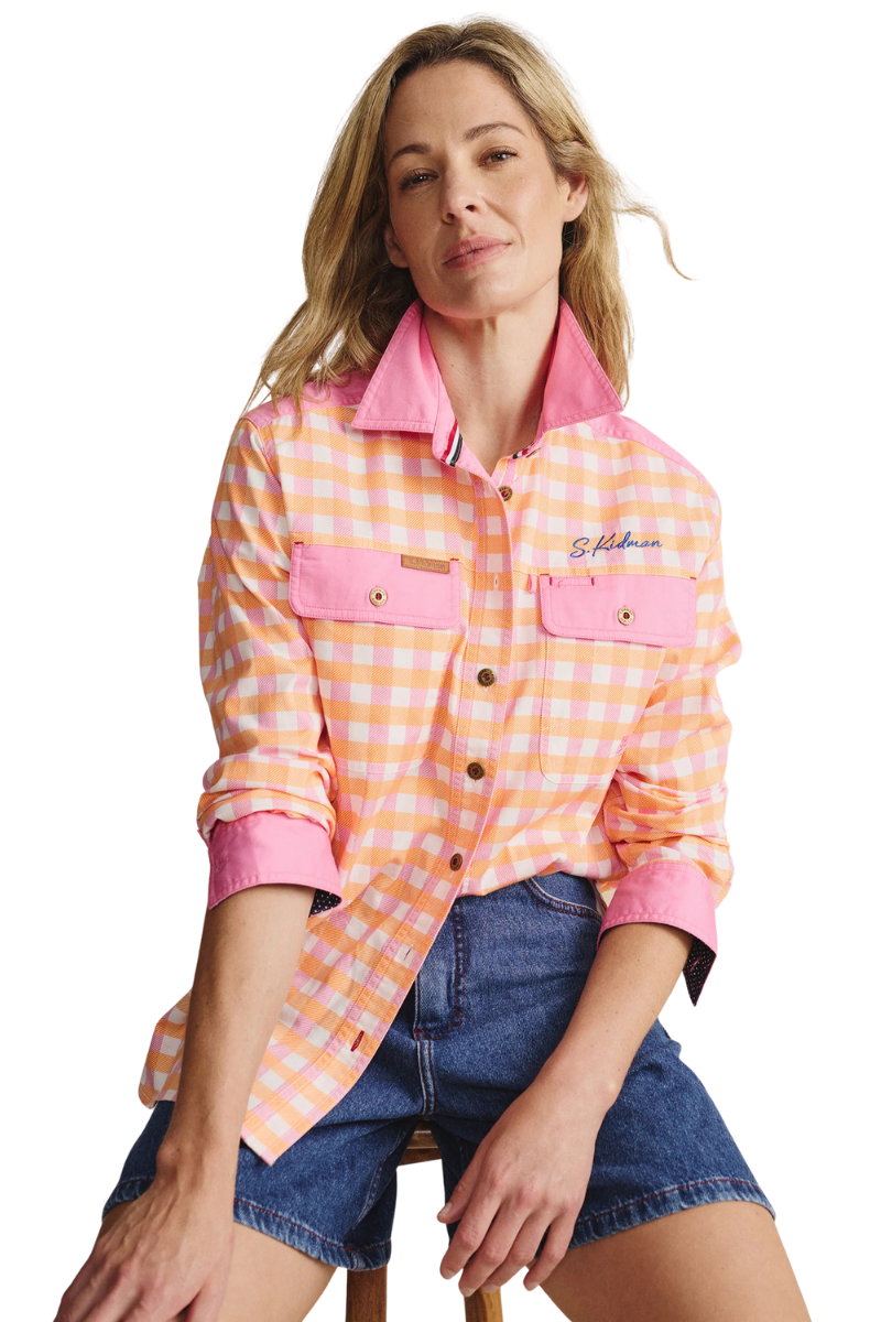 A shirt that's as tough as the land you work on. The Spencer full placket work shirt is crafted from 100% lightweight, UPF 50+ cotton and is designed for comfort and durability. Reinforced double-stitched seams and heavy-duty metal buttons, finished the S.Kidman way, add strength where it counts. Thoughtful details like extra-large front pockets, underarm ventilation eyelets, contrast lining, bar-tacked reinforcements, and a front loop for security tags make this shirt big on performance and style.