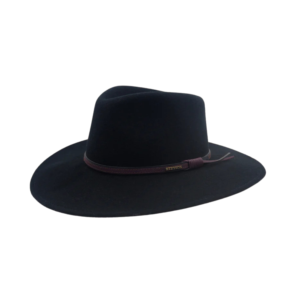 The Montana hat is hand-crafted from premium, water repellent Wool Felt, features a pinch front crown and soft finish brim. Complete with an interior dri-lex sweatband for ultimate comfort and leather hat band with Stetson pin.
