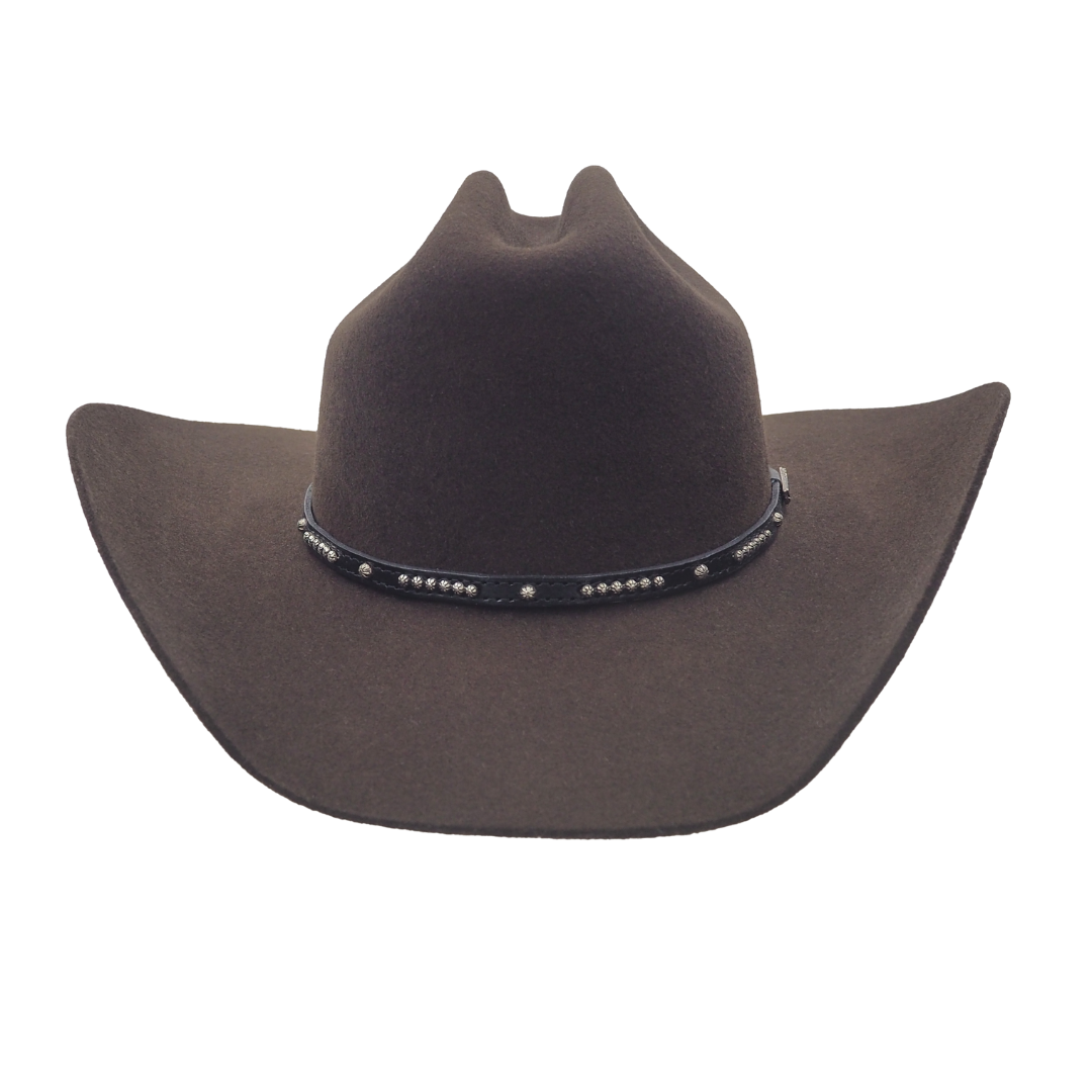The Oregon Hat is constructed of Wool Felt and features a distinct pinch front crown and is finished with a silver accented leather hat band.