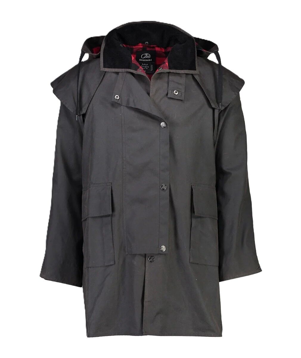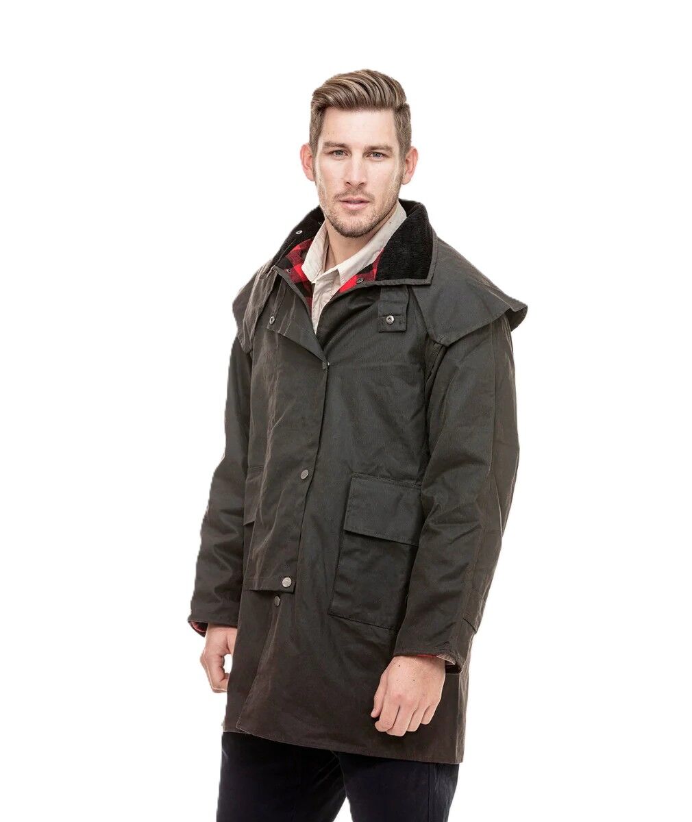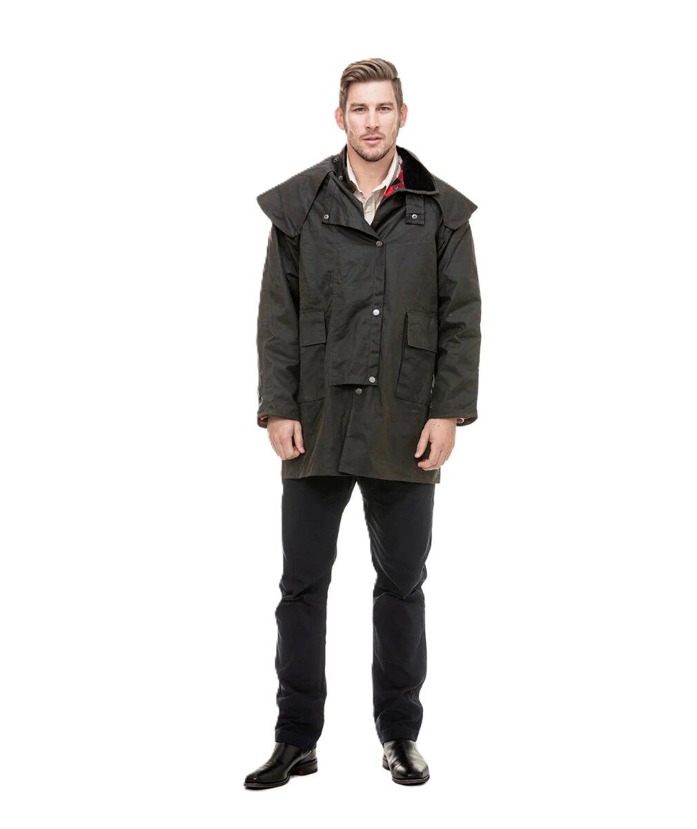 With excellent water resistant design features, our Baxter oilskin short coat is made for keeping the rain off.