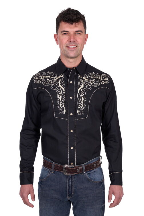 ✔ Classic western long sleeve shirt with original hand drawn embroidered front and back yokes