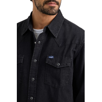Wrangler Mens Classic Fit L/S Denim Shirt (112361702) Black Denim S