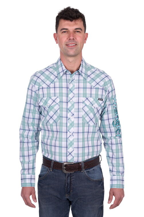 Wrangler Mens Jacob Logo L/S Shirt (X5S1111364) Green/White M