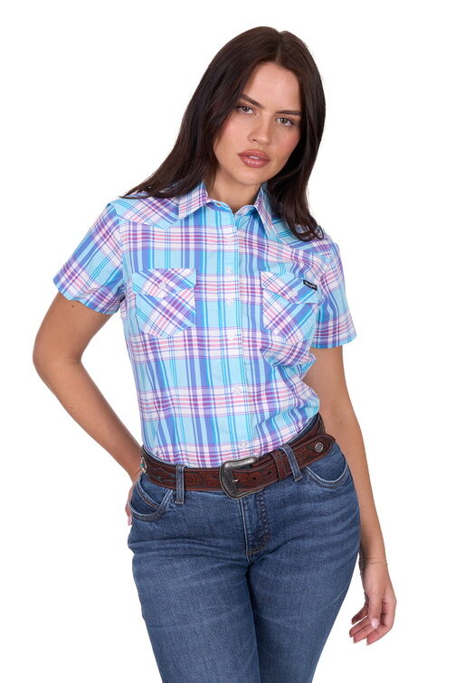 Wrangler Womens Emily Check S/S Shirt (X5S2132431) Blue 12
