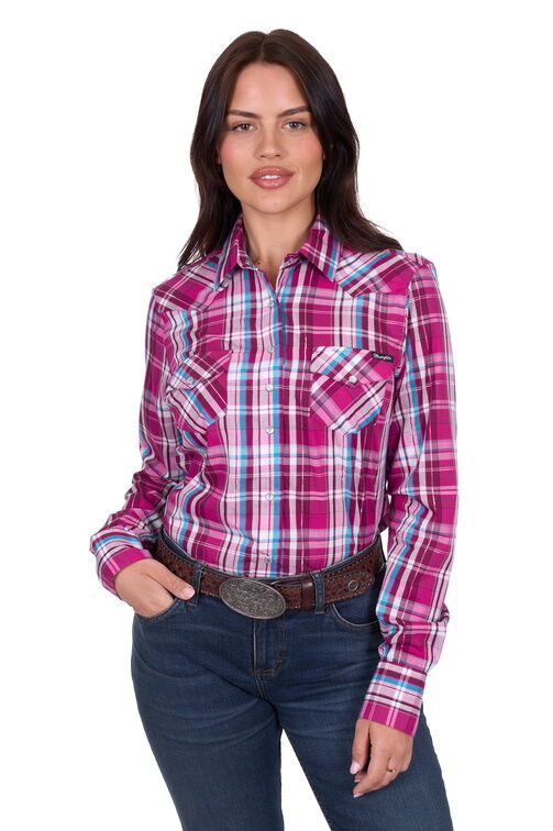 Wrangler Womens Molly Check L/S Shirt (X5S2127432) Pink 12
