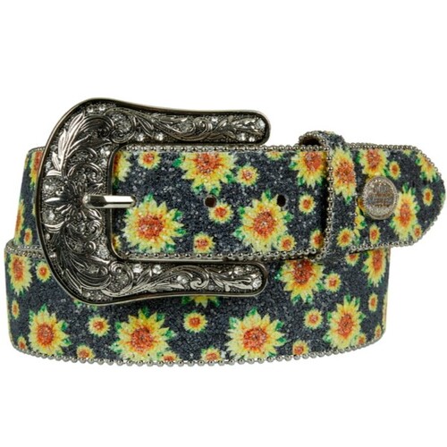 The Pure Western Sunny Belt brings charm with its sunflower design and beaded edging. Finished with an antique silver buckle and a Pure Western logo concho, this belt is a great addition for your western wardrobe.