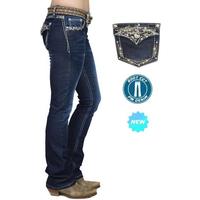 Bootcut jeans from Pure Western with gorgeous bling detail on the back pockets! Mid Rise and stretch denim for comfort. Add a little bling to any outfit.