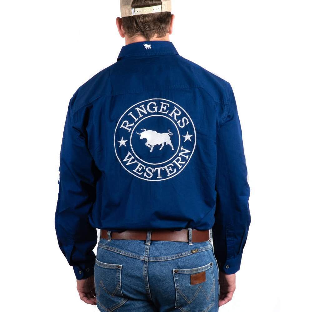 Ringers Western Mens Hawkeye Full Button Embroidered Work Shirt (118110002) Navy S