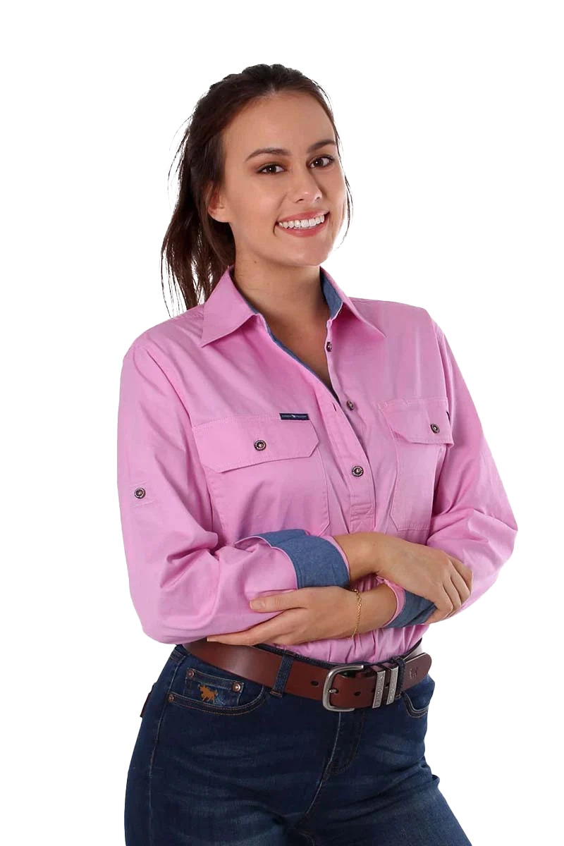 Ringers Western Womens Pentecost River Half Button L/S Work Shirt (171210002) Pastel Pink 8