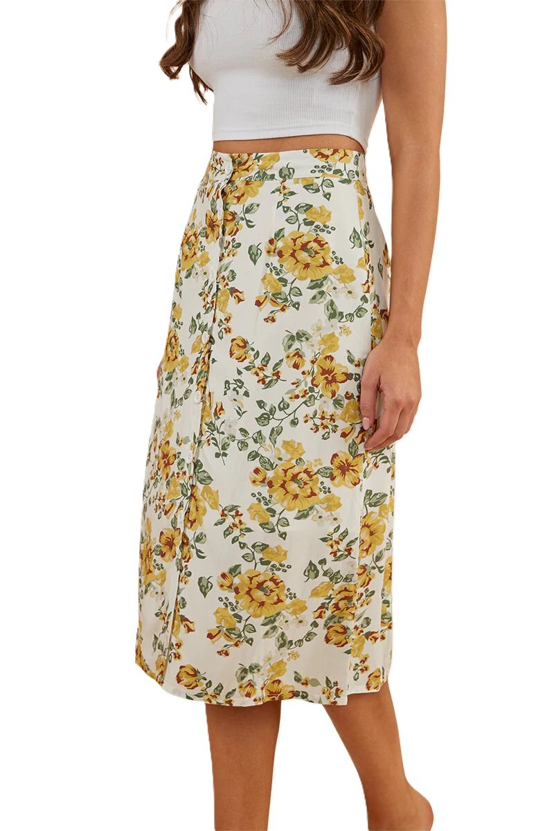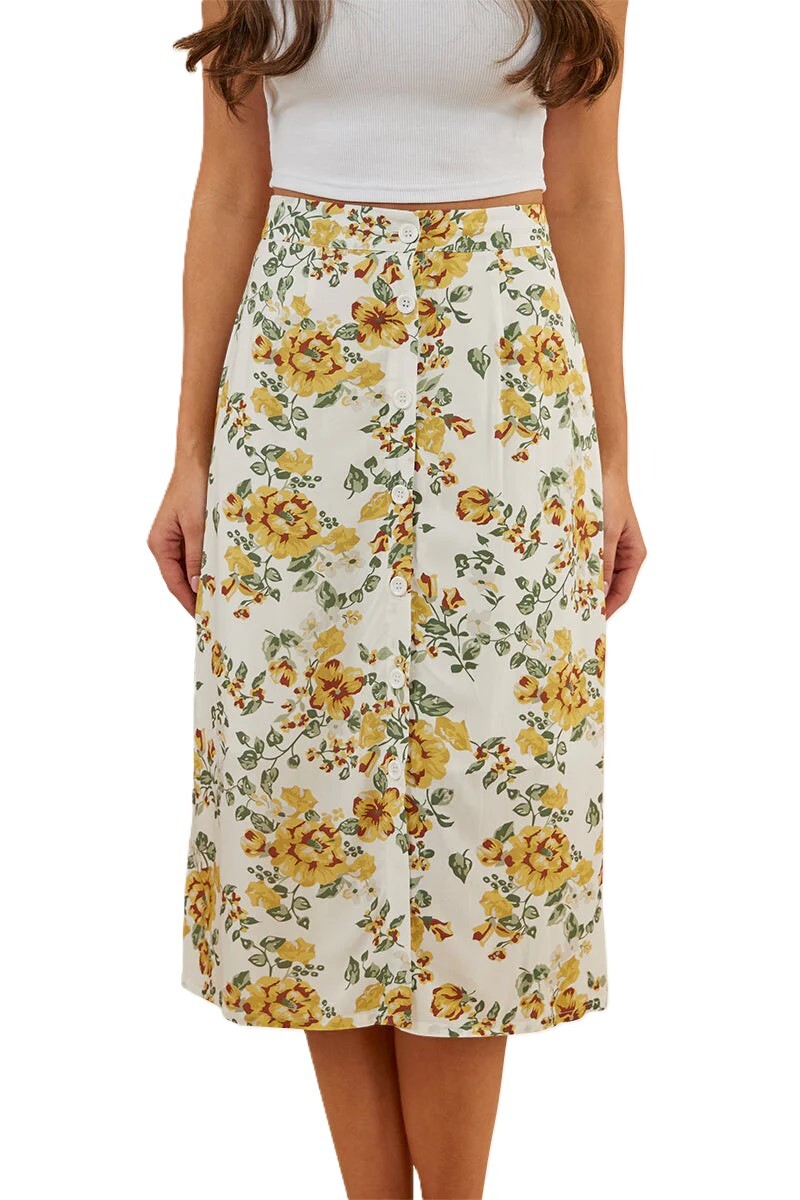 A fresh addition to the Ringers Western country fashion collection, we welcome the Rosabel midi skirt. This skirt features an all-over flower print which transports you to sunlit fields and serene country paths. The centre front button-down opening is not just a functional feature but adds a touch of individuality, allowing you to adjust your look for comfort and style. Made with care, the midi length gracefully flatters every silhouette with every step. A simple crop and cowboy boots are the perfect ensemble for this midi skirt.