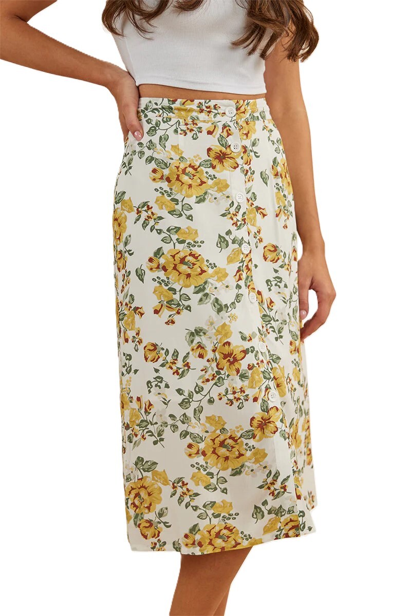 Ringers Western Womens Rosabel Midi Skirt (222138RW) White/Yellow 10 [SD]