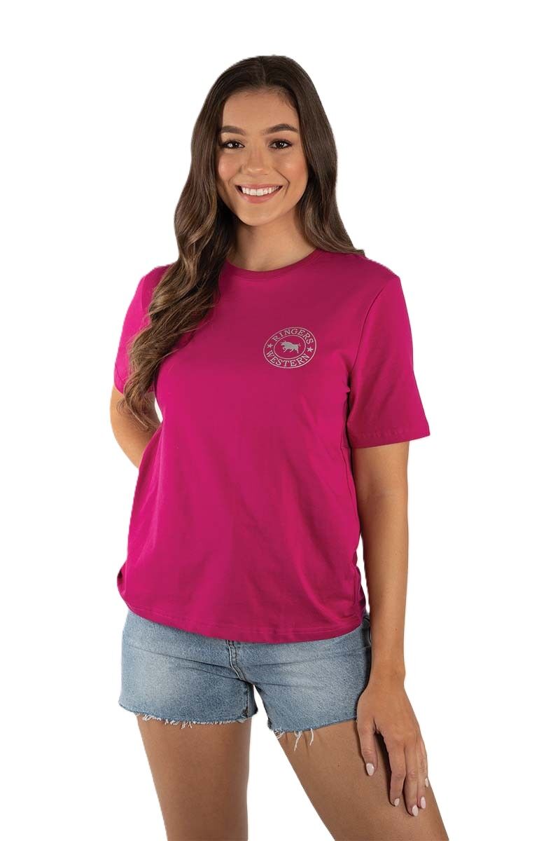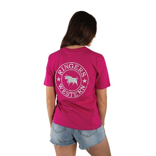 Ringers Western Womens Signature Bull Loose S/S Tee (220018RW) Magenta with Silver Print 8