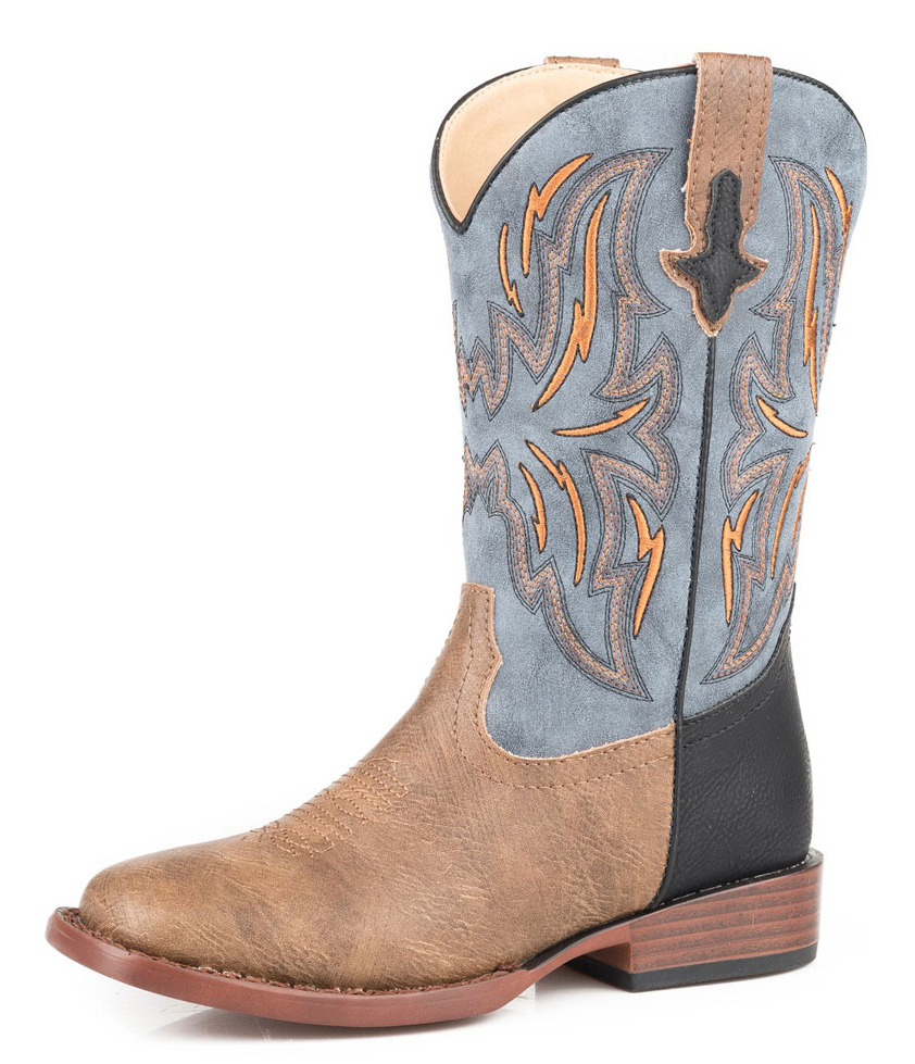 Roper Childrens Big Kids Dalton Western Boots (19900805) Tan/Blue 7