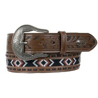 • Roper Mens 1 1/2" Bridle Leather Western Stitch Design Belt (9536500) Brown [SD]