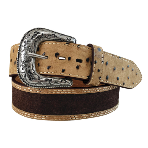 Featuring ostrich leather and suede leather with contrasting stitching, this is a truly unique western belt.