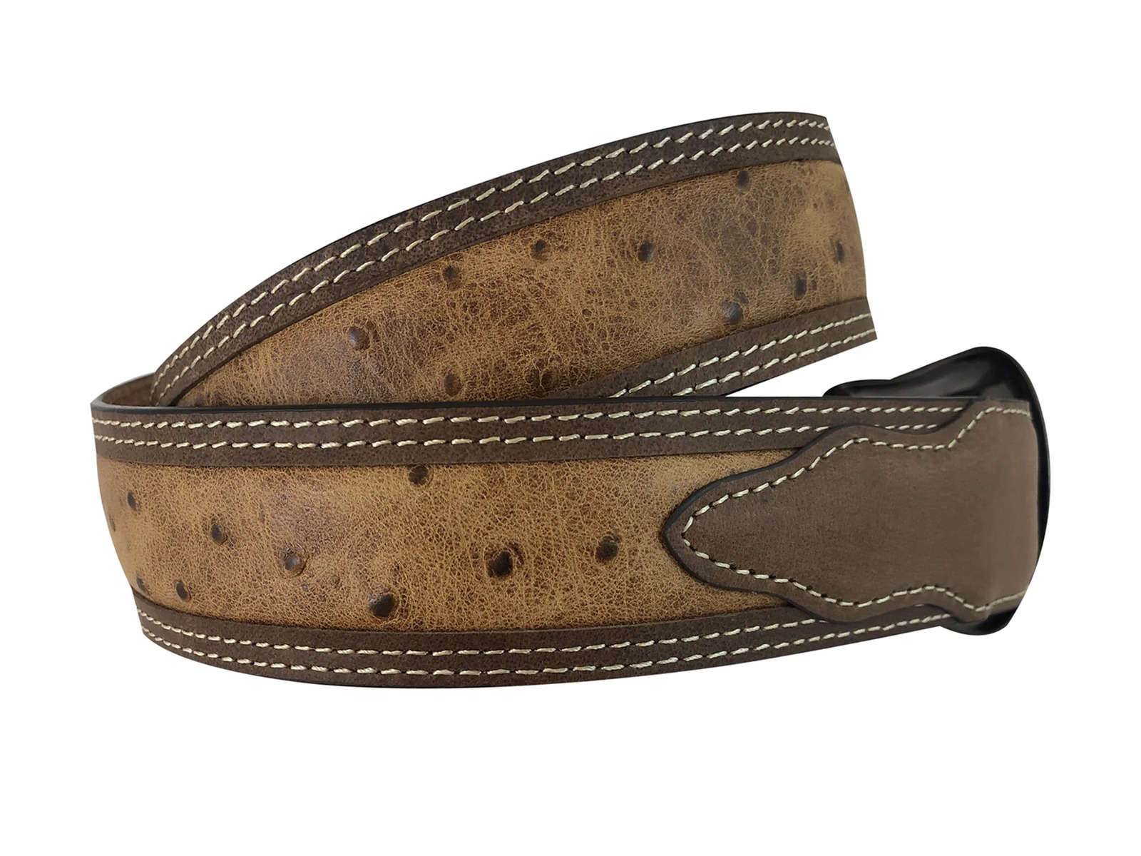 Roper Mens Genuine Ostrich Print Leather 1.5" Belt (9548500) Brown/Tan 46 [SD]