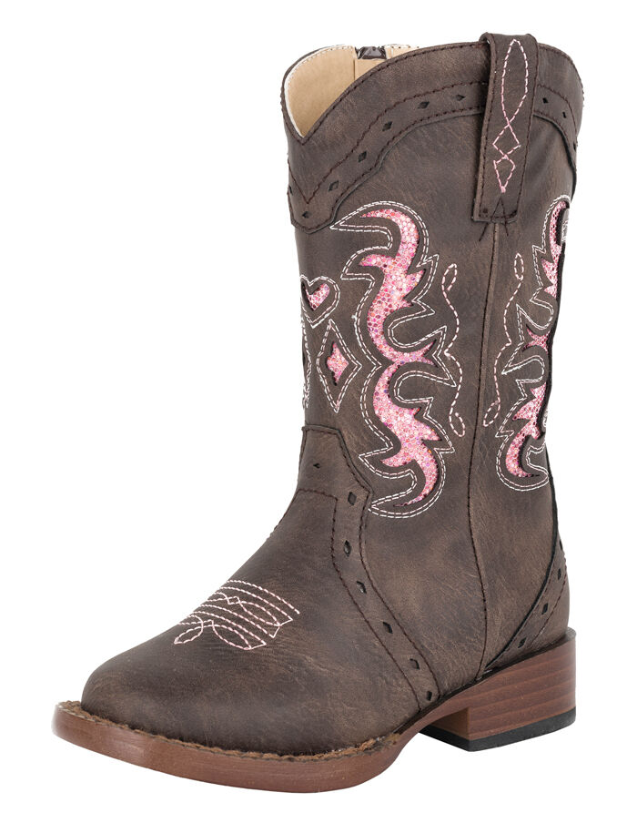 Roper Toddlers Lexi Western Boots (17901998) Chocolate/Pink Glitter 5 [SD]