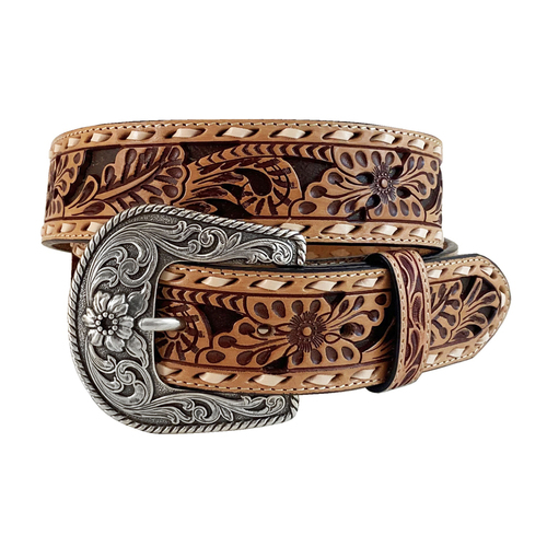 Roper Womens 1.1/2" Floral Tooled Genuine Leather (8851790) Natural XXL [SD]