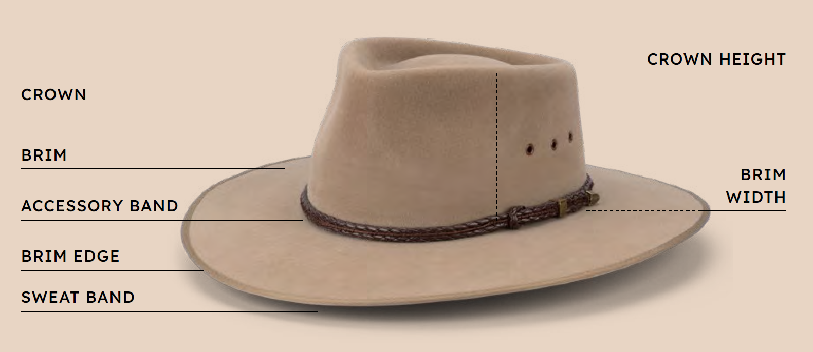 • The crown is the part of the hat that sits over the head, shaping the hat and providing its height and structure.