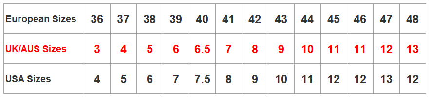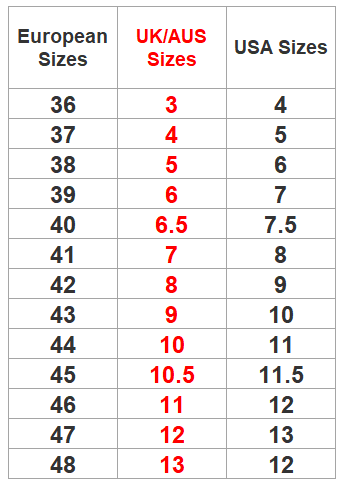 EURO 36 37 38 39 40 41 42 43 44 46 47 48