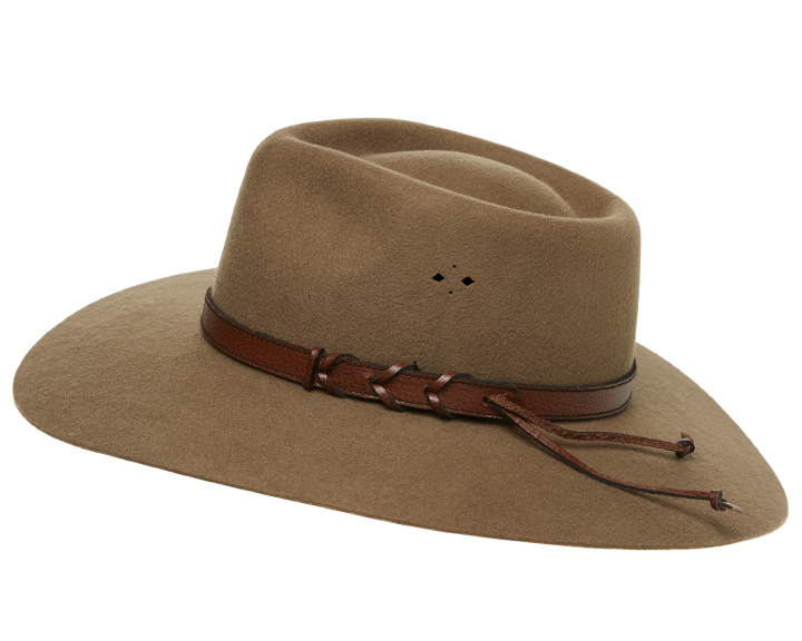 The Big Australian fur felt hat features the classic pinch crown with a wide brim.