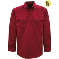 A classic work shirt, the half button is a much loved alternative to a full button shirt for country people, workers and tradies all over Australia. They're easy on/off (less buttons) and safer because there are no shirt-tails to get caught in machinery or on fences!