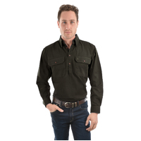 A classic work shirt, the half button is a much loved alternative to a full button shirt for country people, workers and tradies all over Australia. They're easy on/off (less buttons) and safer because there are no shirt-tails to get caught in machinery or on fences!