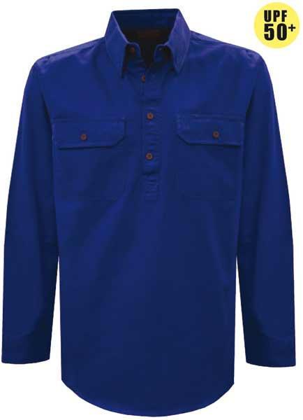 A classic work shirt, half placket style for safety. In 100% light weight cotton drill, this is your go-to country shirt for everyday work.