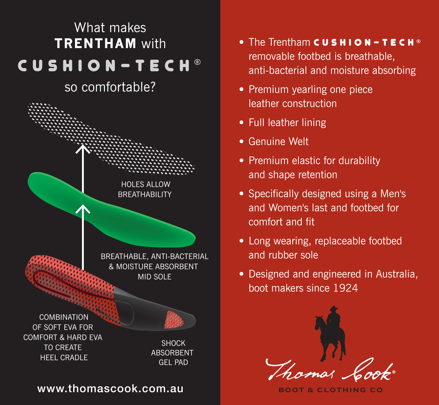 - Cushion-Tech® comfort footbed that is breathable, anti-bacterial, moisture absorbing and removable