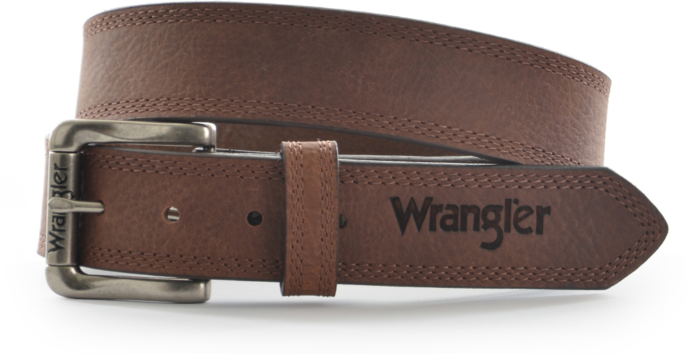 Rustic full grain leather with triple stitching along the full length, this belt is a true statement of 'less is more'. The only features are the Wrangler buckle, and the Wrangler stamp on the end tip.