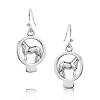 Show off your equestrian pride with the Horses of the World Earrings. These earrings feature a simple, yet alluring design. A detailed horse is the main design of the earrings with a bright silver finished globe surrounding it. The design is modeled after the coveted AQHA Globe trophy. These earrings have hypoallergenic French wire.