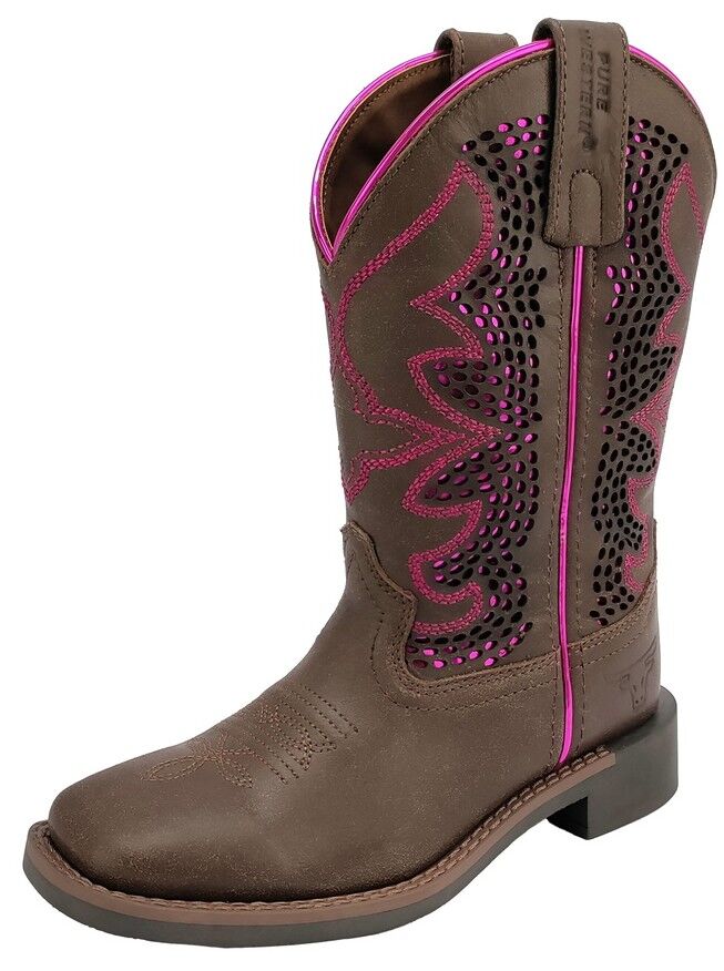 Pure Western Childrens Abby Western Boots (PCP78114C) Dark Brown/Fuchsia J10